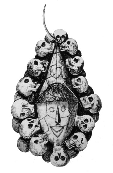 Mask-of-Aurid (Aureed) Published August 28, 2012 at 378 × 579 in Part Four: a tale of two boys The tortoise-shell mask adorned with human skulls. Brockett, W. E., Narrative of a Voyage from Sydney to Torres Straits in Search of the Survivors of the “Charles Eaton”. Sydney: printed at the Colonist, 1836. Share this:Share Click to email a link to a friend (Opens in new window) Email Tweet Click to print (Opens in new window) Print