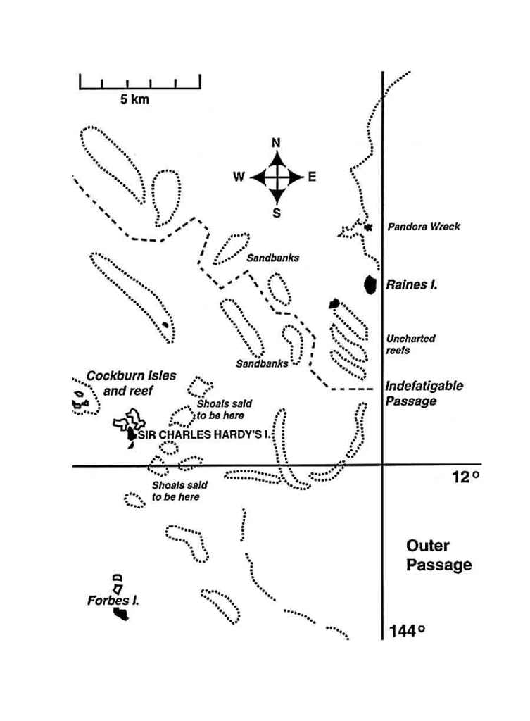 Admiralty-chart-of-great-detached-reef Published January 26, 2013 at 900 × 1224 in Part One: outward bound The Indefatigable entrance laid down over Admiralty charts of that era. Share this:Share Email a link to a friend (Opens in new window) Email Tweet Print (Opens in new window) Print