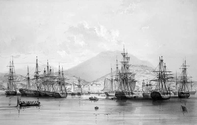 Hobart-Town,-Sullivan’s-Cov Published August 28, 2012 at 774 × 491 in Part One: outward bound Merchant ships at anchor in Sullivan’s Cove, Hobart Town, c.1838. Share this:Share Email a link to a friend (Opens in new window) Email Tweet Print (Opens in new window) Print