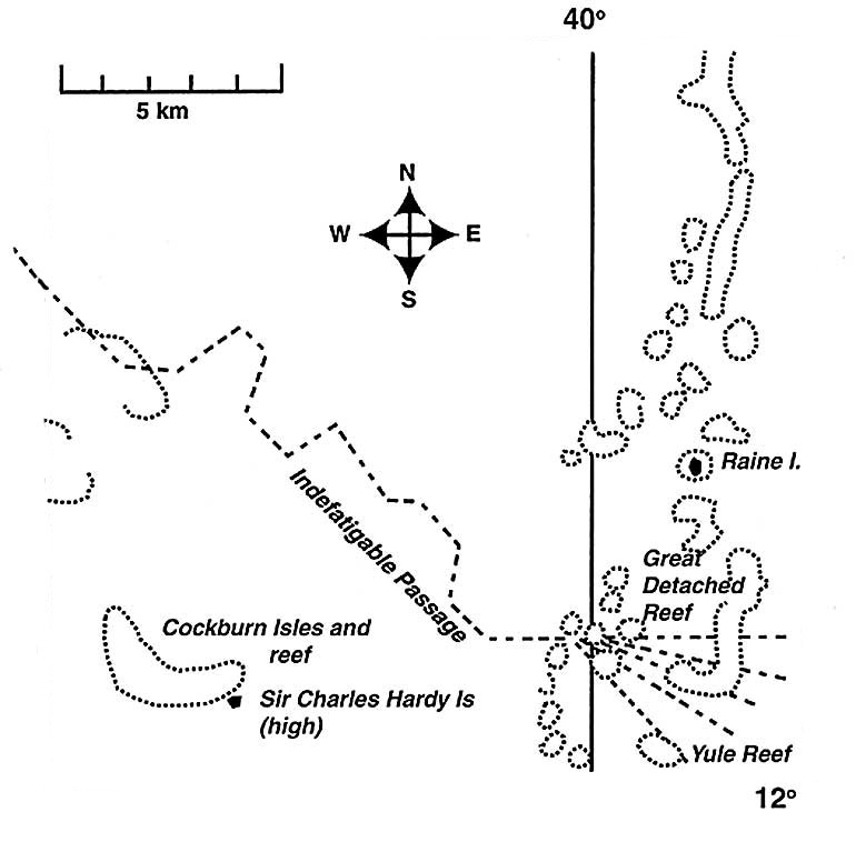Indefatigable-Entrance Published August 23, 2012 at 770 × 758 in Part One: outward bound The Indefatigable passage as it really looked, with its entrance blocked from the east by the Great Detached Reef. Share this:Share Email a link to a friend (Opens in new window) Email Tweet Print (Opens in new window) Print