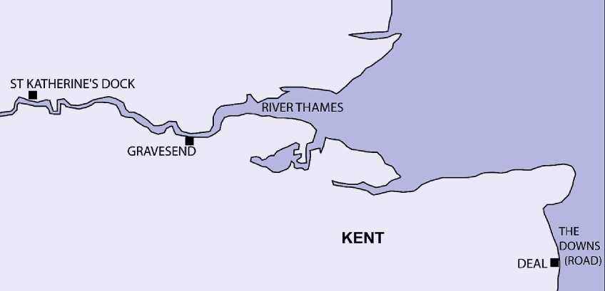 Map-of-Deal-copy Published July 4, 2012 at 2058 × 993 in Part One: outward bound Route from St Katherine’s Dock to the Downs. Share this:Share Click to email a link to a friend (Opens in new window) Email Tweet Click to print (Opens in new window) Print