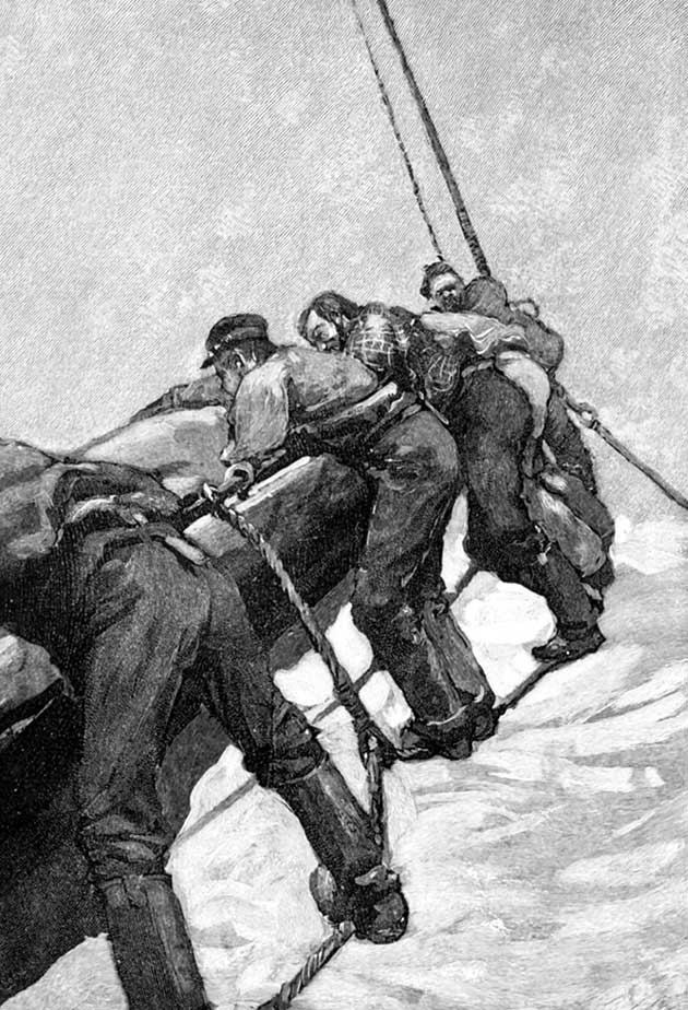 Stowing-the-top-sail-for-web Published May 27, 2012 at 630 × 924 in Part One: outward bound Reefing the topgallant sails to reduce canvas. Share this:Share Click to email a link to a friend (Opens in new window) Email Tweet Click to print (Opens in new window) Print
