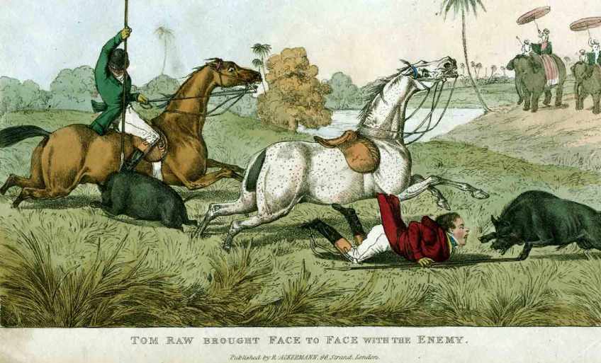Tom-Raw-comes-face-to-face- Published April 1, 2013 at 1400 × 848 in Part One: outward bound Tom Raw hog hunting Share this:Share Email a link to a friend (Opens in new window) Email Tweet Print (Opens in new window) Print